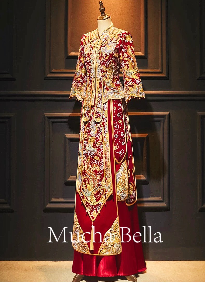 首页 / 中式 / Mucha Bella / 金龙金凤红色烫钻龙凤褂