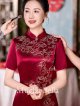 暗红色祥云钉珠刺绣旗袍款妈妈装