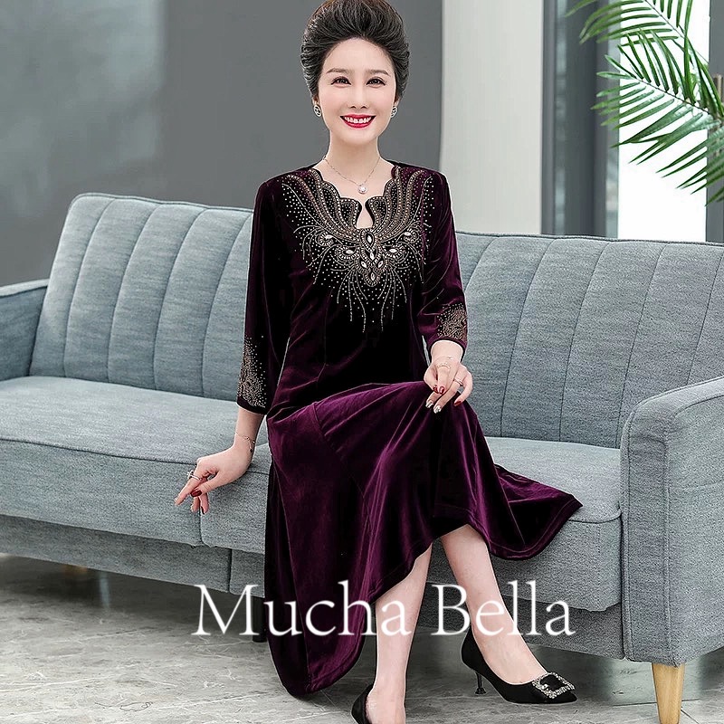 首页 / 妈妈装 / Mucha Bella / 紫色长袖钉珠A摆礼服裙妈妈装